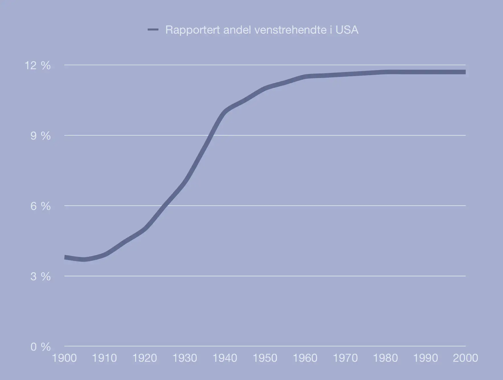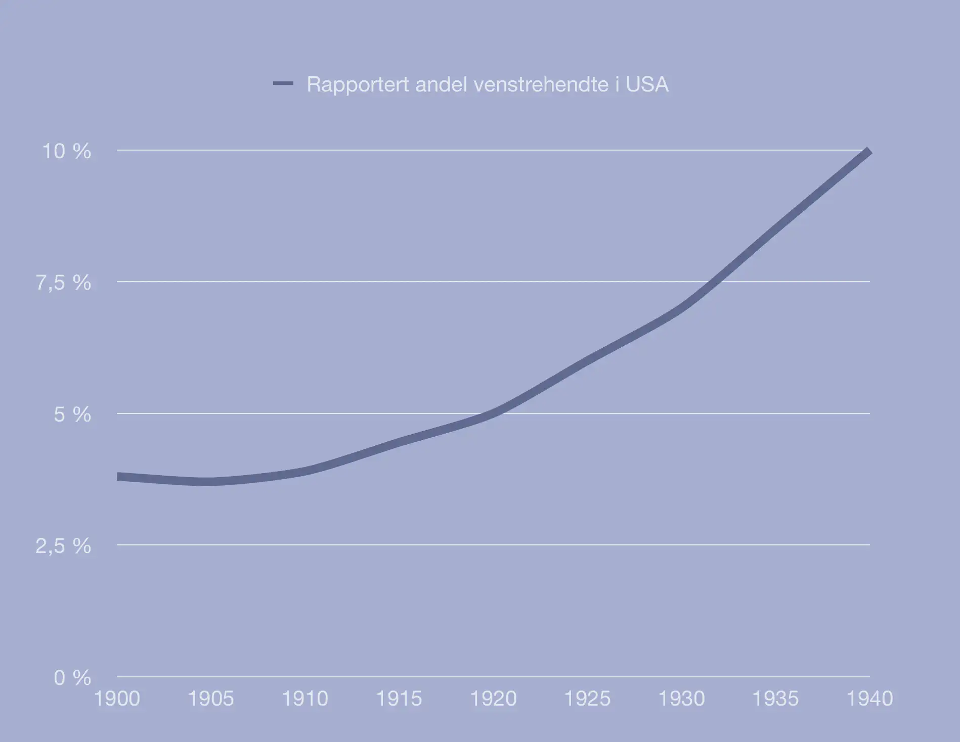 Den omhandler andel rapporterte venstrehendte, fra 1900 til 1940.